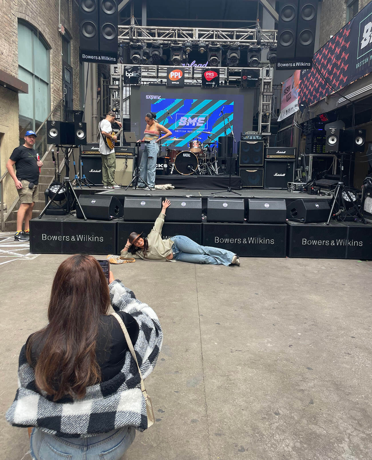 Earlier in the night, I was at a local venue called The Courtyard (formerly known as Cedar Street Courtyard). Its moniker comes from the fact there are two bars that flank either side of a, you guessed it, courtyard. The British Music Embassy took over this space all week, a confab supported by the ultra-luxury English speaker brand Bowers and Wilkins, which are showcasing all of today’s buzziest artists who hail from across the pond. They’ve made their way from the land of fish and chips to the land of pork and beans. Unfortunately, the venue was just evacuated and high-taling it back to my hotel room.