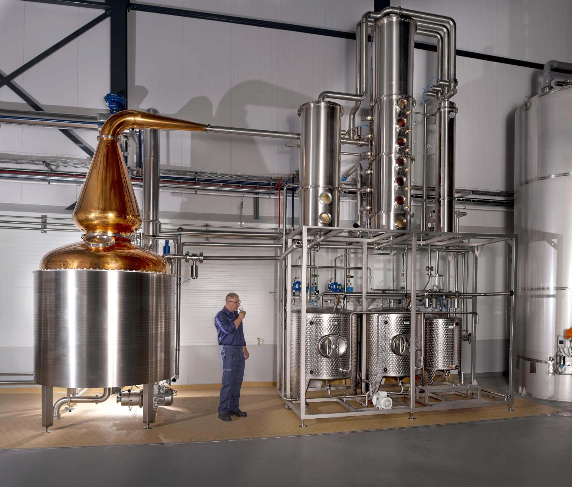 Boomsma has made its genever from the same recipe since the company was founded by Dirk Boomsma in 1883. “For Genever you have to add malt spirit, a traditionally pot still distilled spirit of wheat and barley distilled twice till 47% ABV,” says Chantoine Boomsma, fifth generation co-owner of the company. “At Boomsma we also add another type of grain alcohol called Korn spirit. This is also traditionally pot distilled with a mash of wheat, barley and rye, triple distilled till 74% ABV. If you blend the three spirits together you get a much broader base to carry your genever,” Boomsma says.