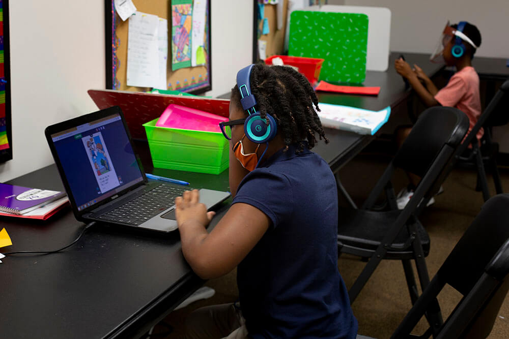 “Many of our employees have dual-income households, and during COVID, their children need supervision while the parents go to work,” said Merrilee Kick, founder and CEO. “So, we hired a certified TEA elementary teacher, Christine Drumm, to work in our classroom with them while they do their online learning with their respective schools.”