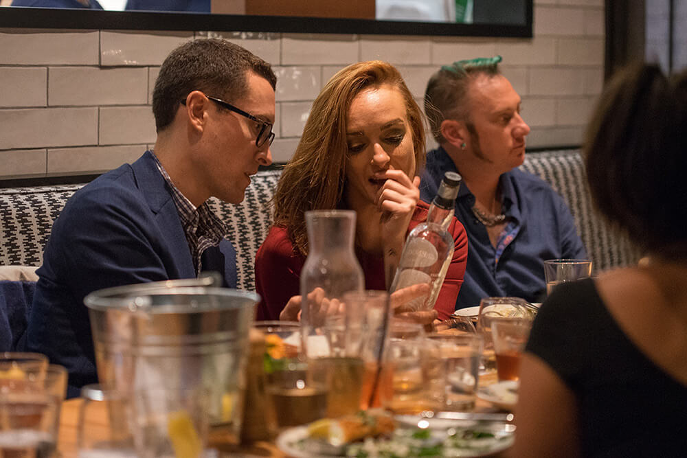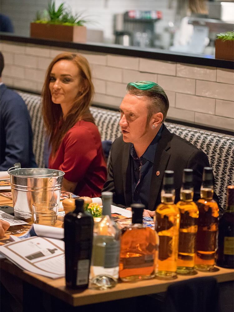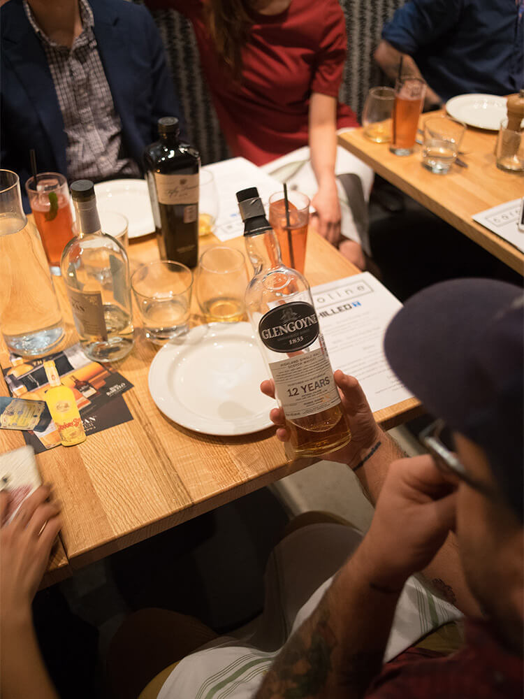 General manager and Chilled 100 member Michael Childress helped coordinate the evening, along with Chilled’s marketing manager and Chilled 100 national director, Max Ferro. Childress created a cocktail menu that paired expertly well with each of the dishes served throughout the evening. Some menu choices included grilled shishito peppers, roasted sweet corn dip, chicken schnitzel, hot and crunchy halibut, wild mushroom Bolognese, and quinoa chili bowls. The cocktails enhanced each of the dishes while highlighting the evening’s sponsored spirits (including 50 Pounds Gin, Cardenal Mendoza Brandy, Boltran Rum, Liquore Strega, and Glengoyne 12,15 and 18 Year Old), which were all skillfully presented by Jim Keller, Southwest division manager for Shaw-Ross International Importers.