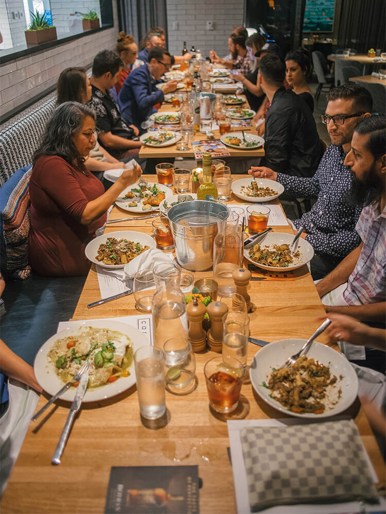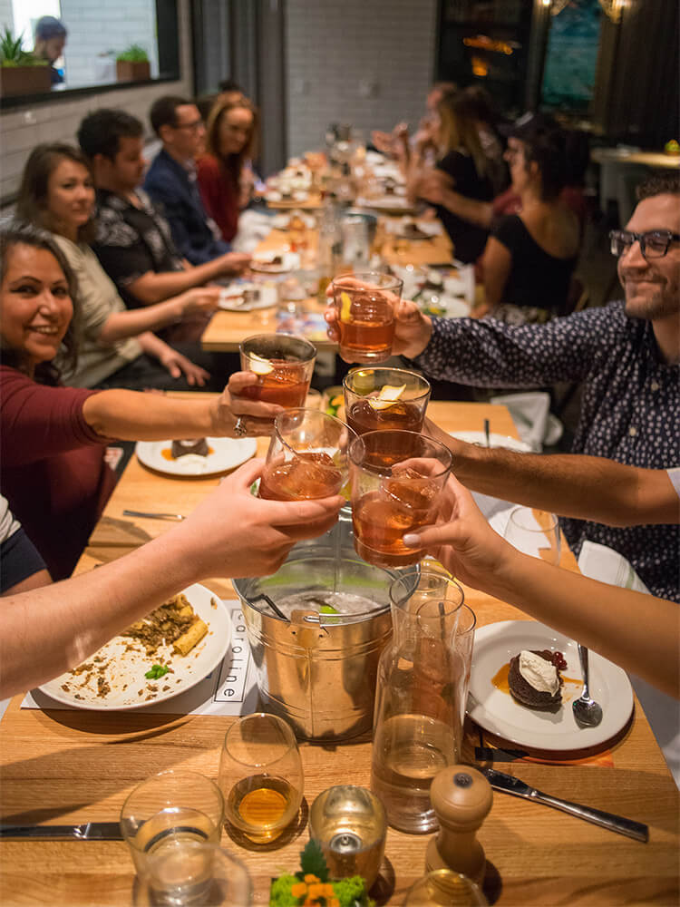 Celebrating at Caroline Restaurant, located on the first floor of the Aloft, the classic and clever dinner menu was served in an open and airy dining room.