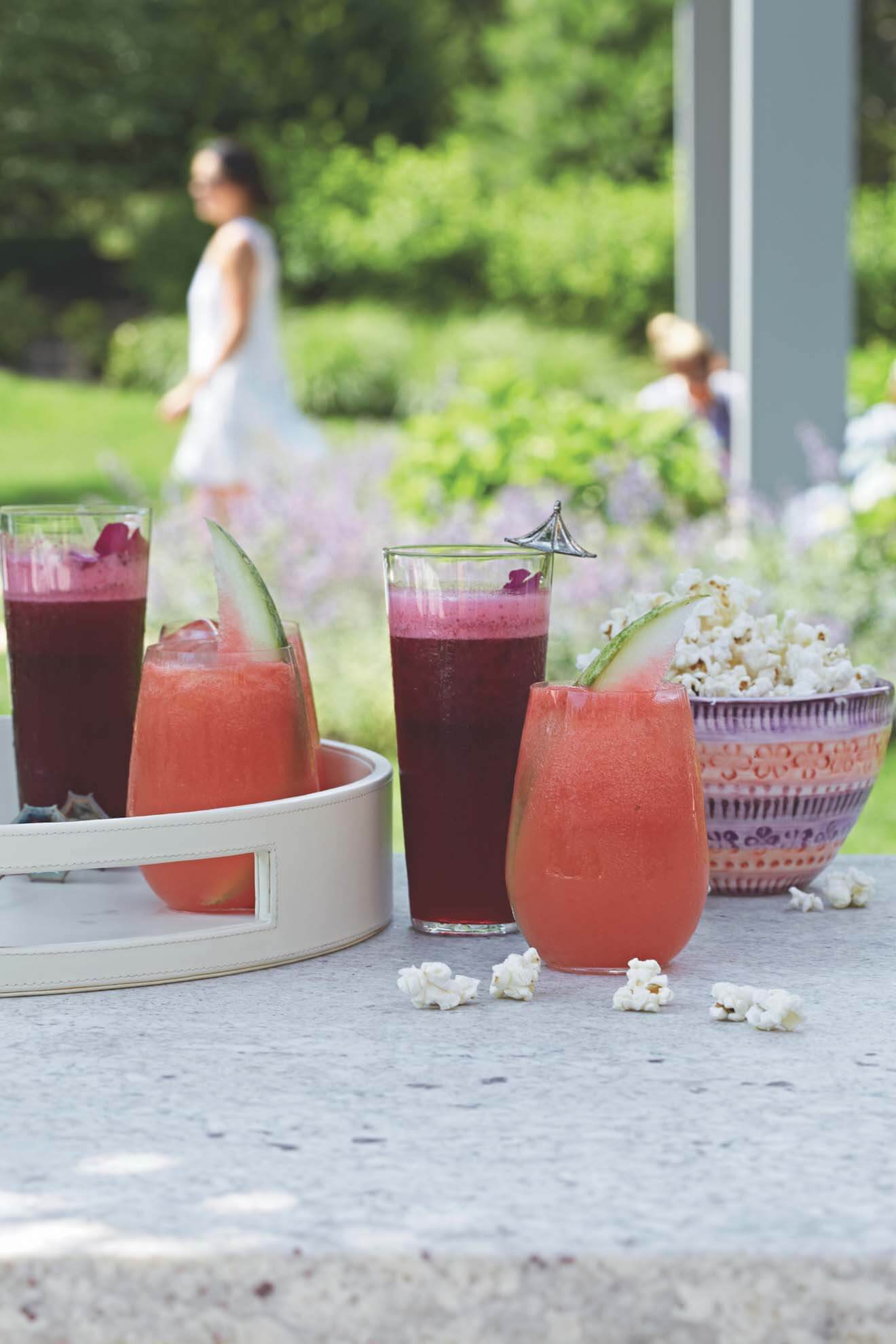 - Garnish each glass with a watermelon wedge.