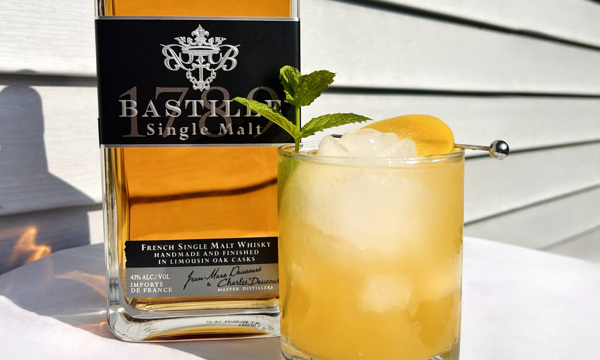 2. Strain into a coupe glass and garnish with a lemon twist.
