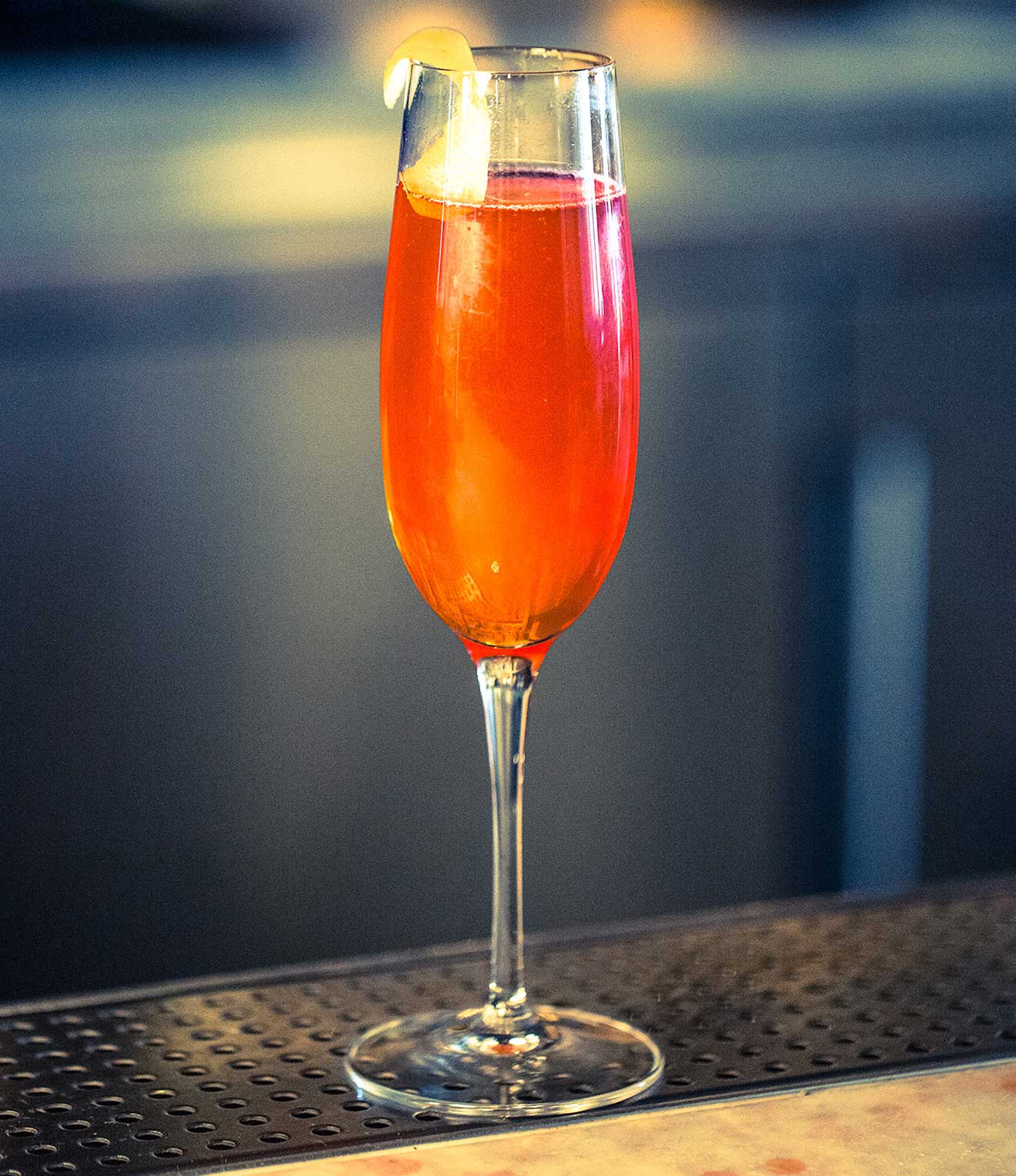 - Combine all ingredients in a tin, add ice, shake, strain into a flute and top with bubbles.