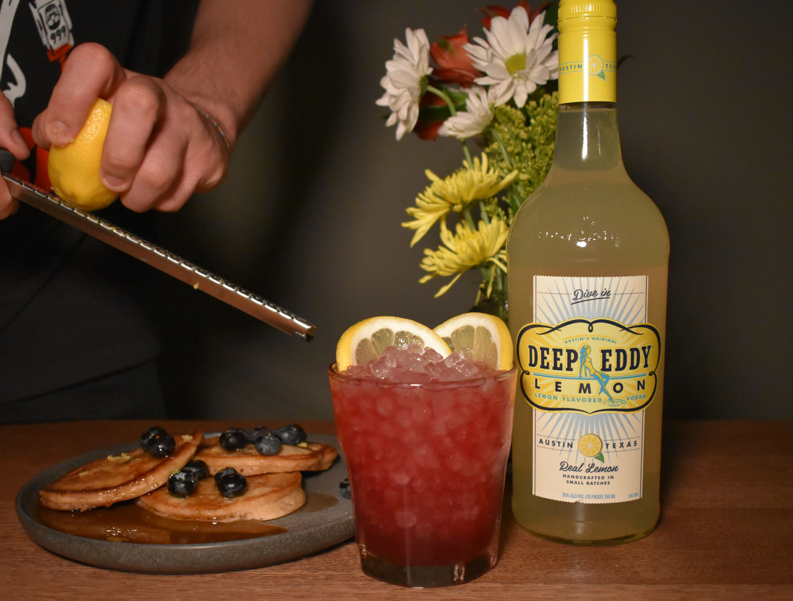 As a kid Blueberry Pancakes with Lemon Zest always set the tone for a great day. I wanted to take the same fun and excitement I felt as a kid eating those pancakes and put it in an cocktail!