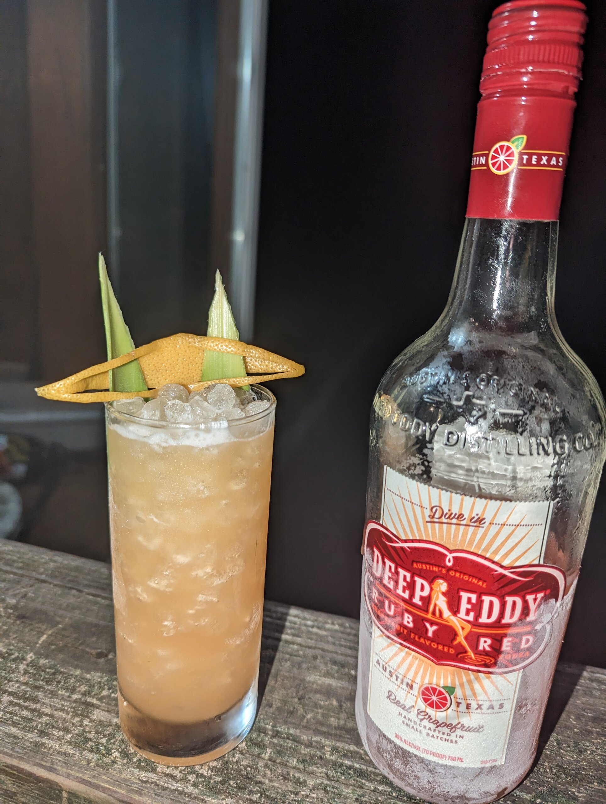 When friend told me about contest they said it was just the Ruby red, my brain immediately went to Donn Beachcomber and Donn’s mix #2 being 2 parts grapefruit 1 part cinnamon. If using a tiki icons palette, drink must be tiki and I feel Falernum is a under used spirit. Somebody said original garnish looked like a ninja turtle mask so went with it