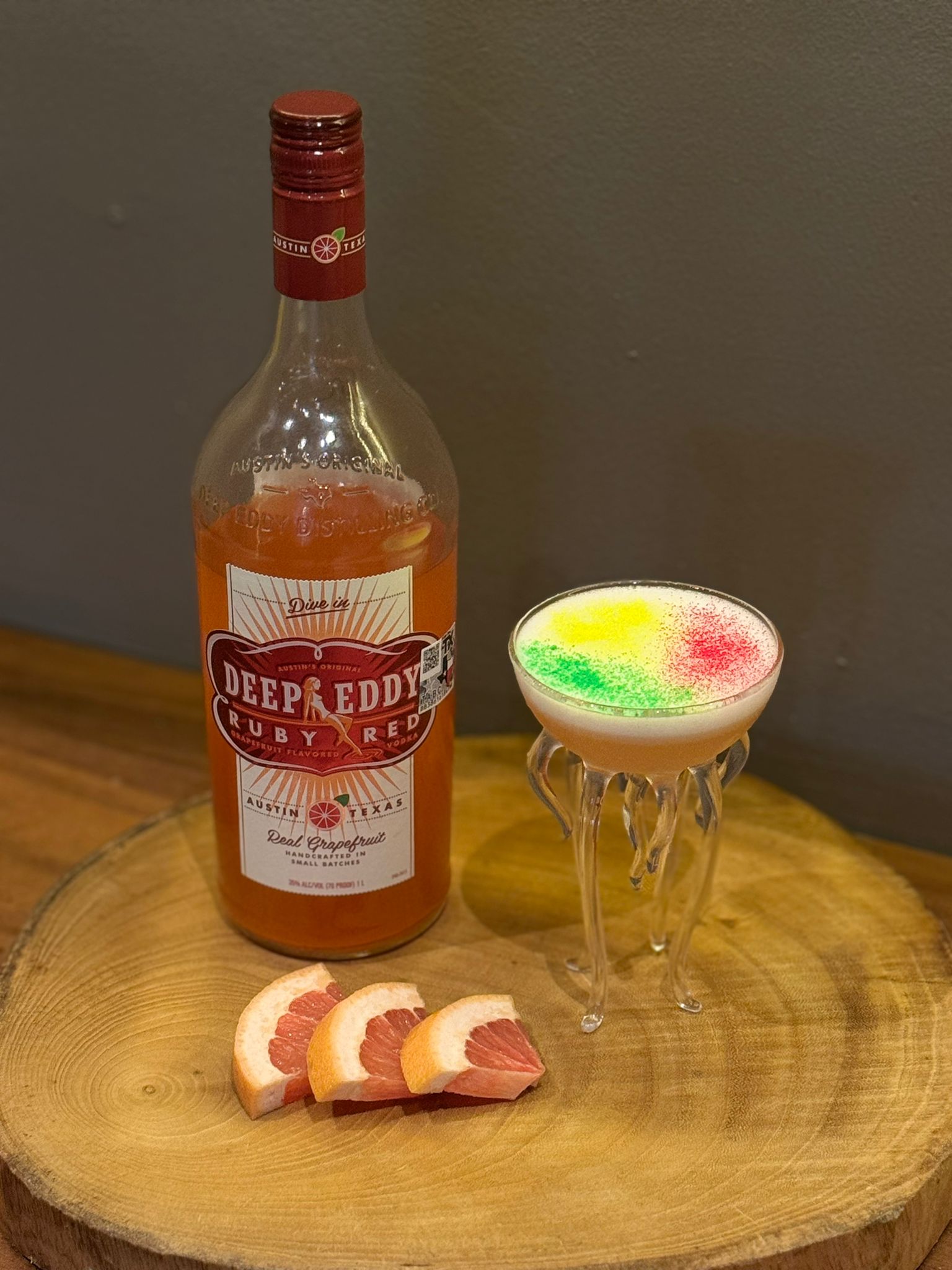 The inspiration come from a Funfair, you can see a lot of color and have fun a good time, also as a rollercoaster in your mouth, you can feel all the flavors in layers, this cocktail is also inspired in zero waste, that’s why I used the skin of the grapefruits when you already juiced it.