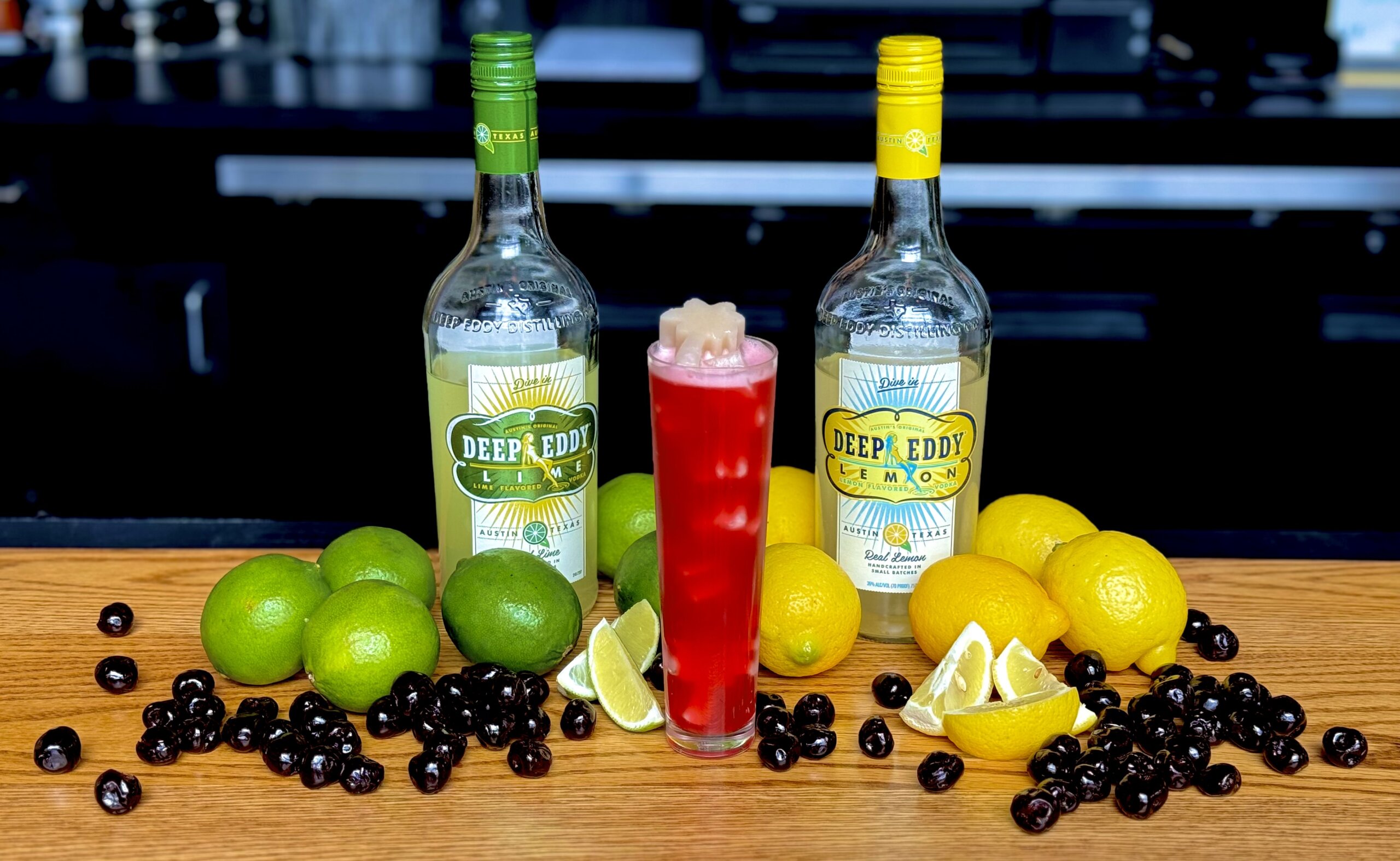 In a shaker add cherry syrup, lime juice, Deep Eddy’s Lemon and Deep Eddy’s Lime to a shaker. Shake and double strain over lychee ice cubes.