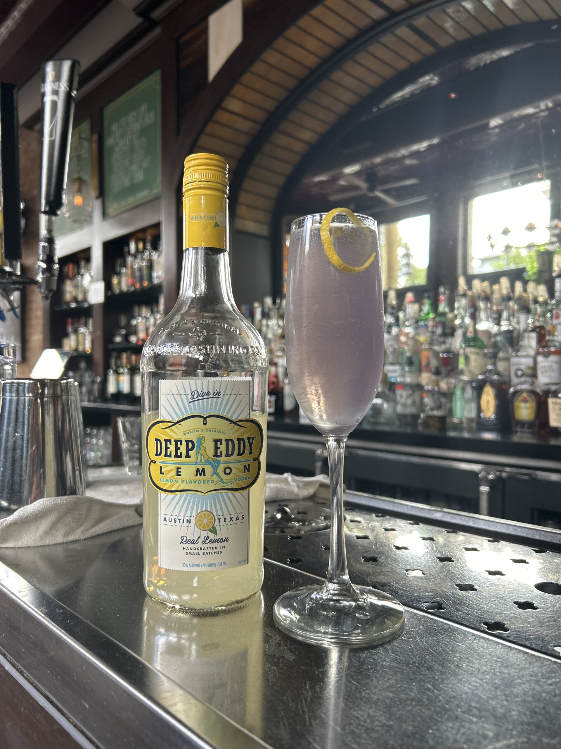 Mix Deep eddy lemon, crème de violet, simple and stir