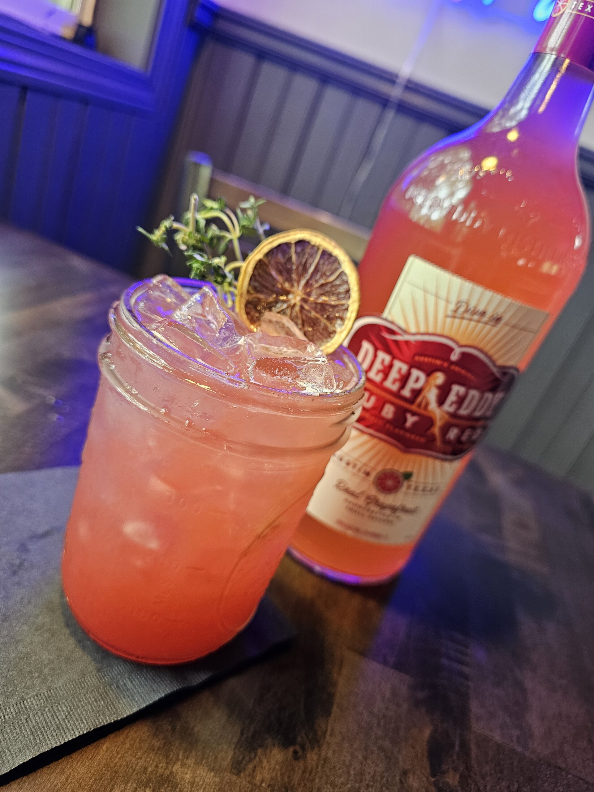 Deep Eddy grapefruit, real strawberry puree, thyme simple syrup, soda water, splash of lemonade, fresh lemon juice