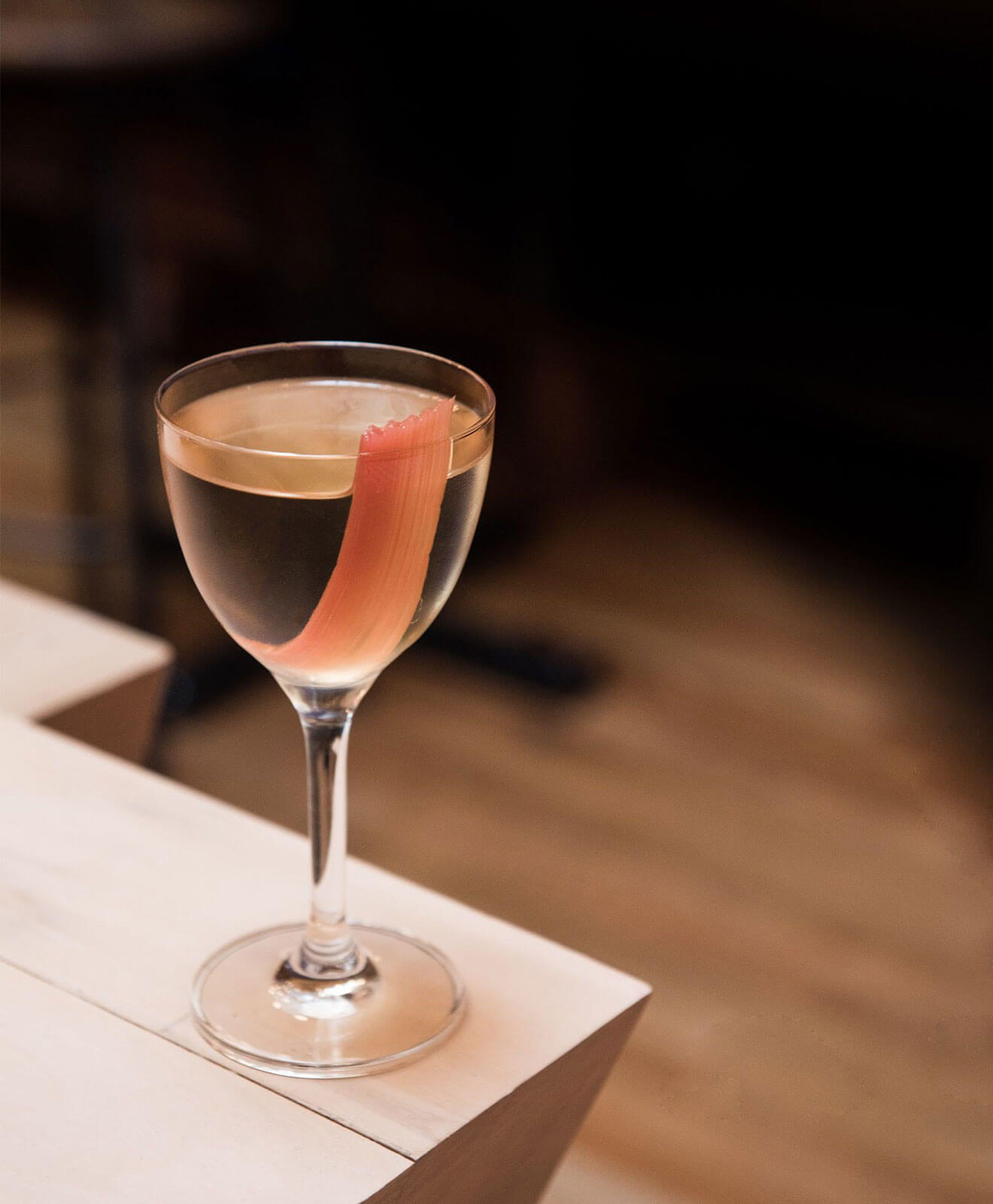Preparation: Combine ingredients (scale up as desired). Store in freezer. When ready, pour contents straight into a chilled glass. Garnish with pickled rhubarb.