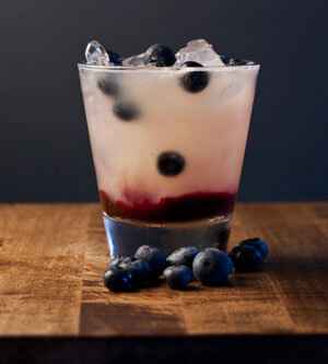 Preparation: Place 2 spoonfuls of Blue Berry Compote into bottom of rock glass. Add all the other ingredients into shaker. Add ice and shake vigorously slowly straining concoction over the highest ice cube in the rock glass. This will give the cocktail that layered look add fresh blue berries for garnish.