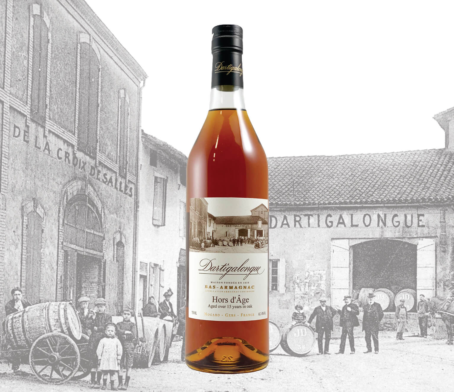 From the oldest house in Bas Armagnac, Dartigalongue Bas Armagnac Hors d’Age is aged a minimum of 15 years The nose features scents of baked apple, butter, and black oak. The mouth is vibrant and generous, featuring more baked apples, oak,toffee, and vanilla with hints of tobacco toward the end. The finish is long, fat, and silky.