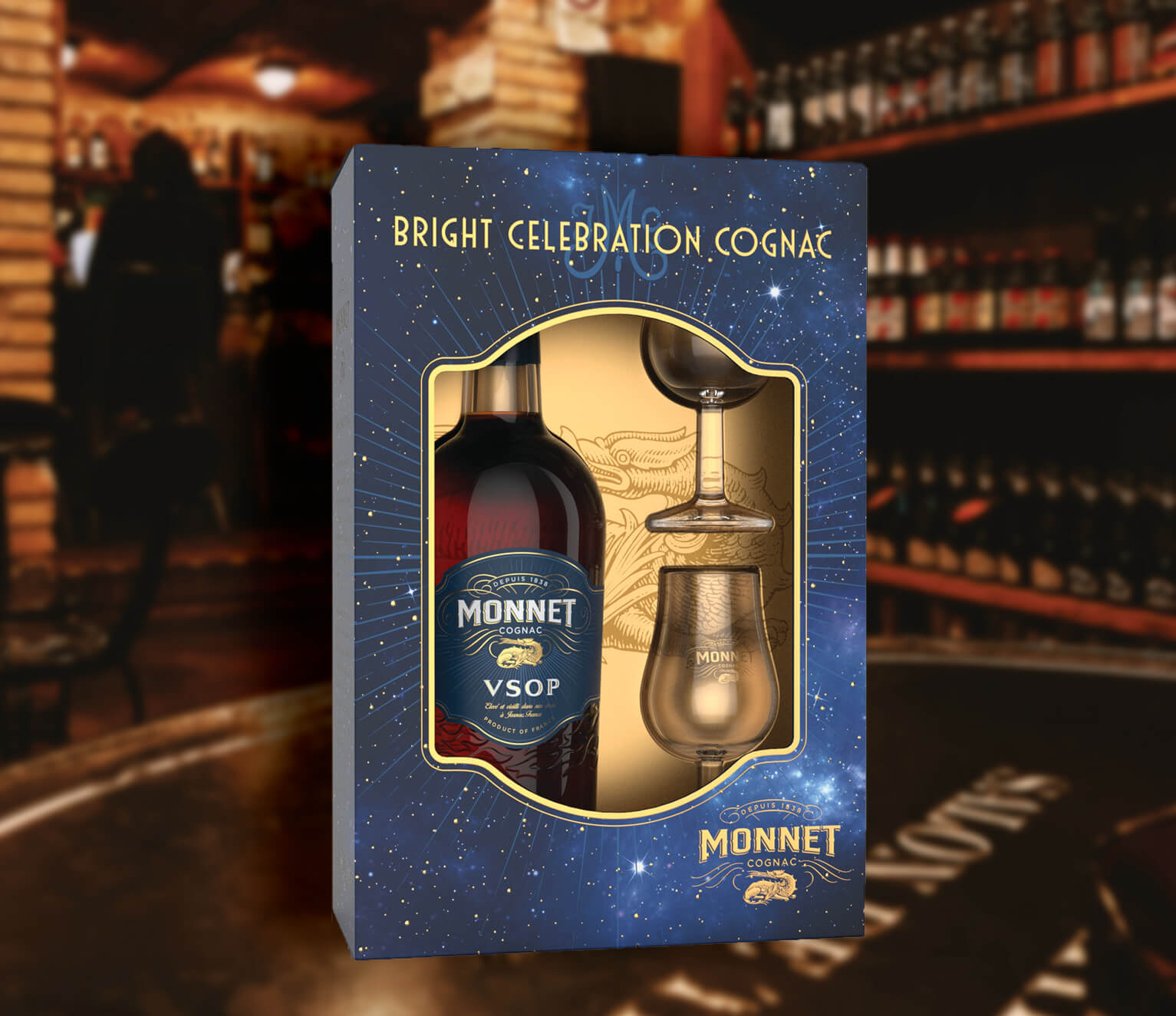 Monnet VSOP reveals spicy aromas of vanilla, dried fruits, and hints of leather. On the palate, it is deliciously rich and balanced, with notes of honey, nougat, and a long, smooth finish. The perfect gift set for Dad comes with two elegant tulip glasses, especially designed to sip and savor fine cognac.