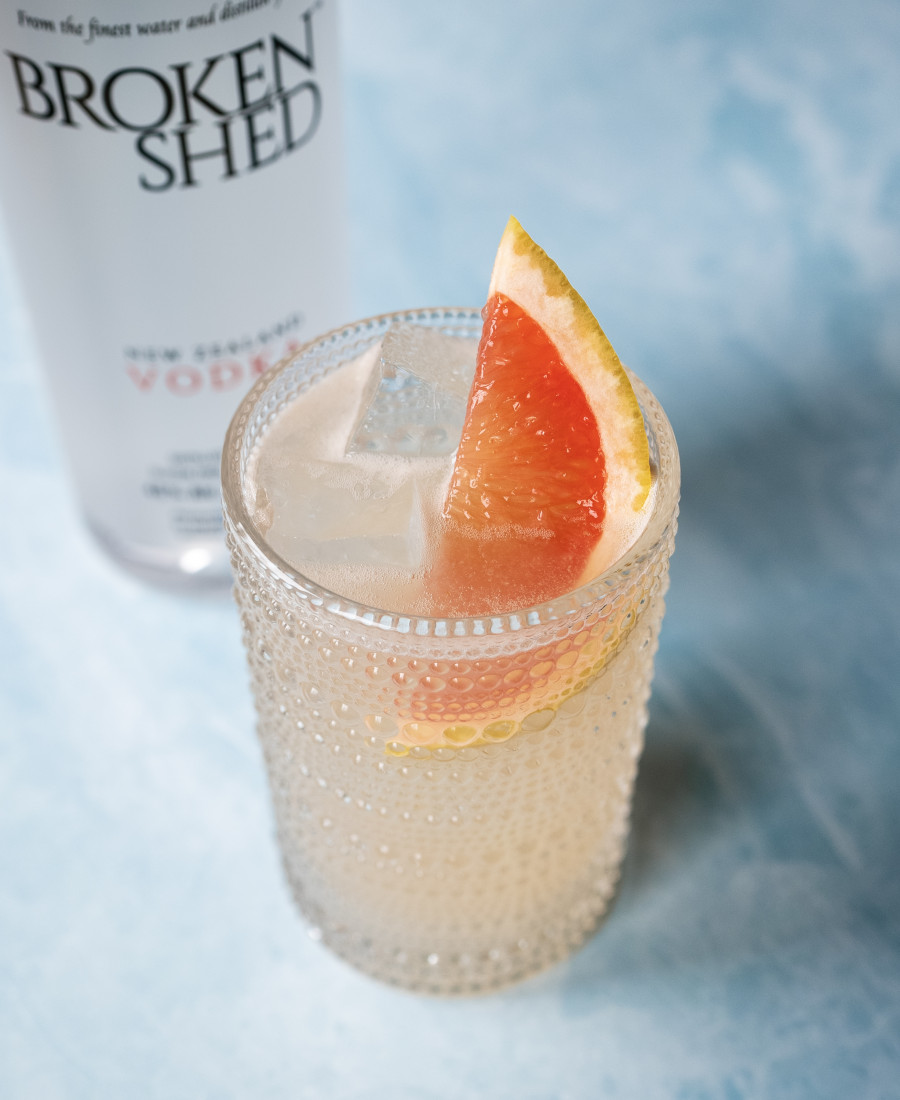 - Short shake everything (except the club soda) with 3 ice cubes, then double strain into a glass filled with ice.