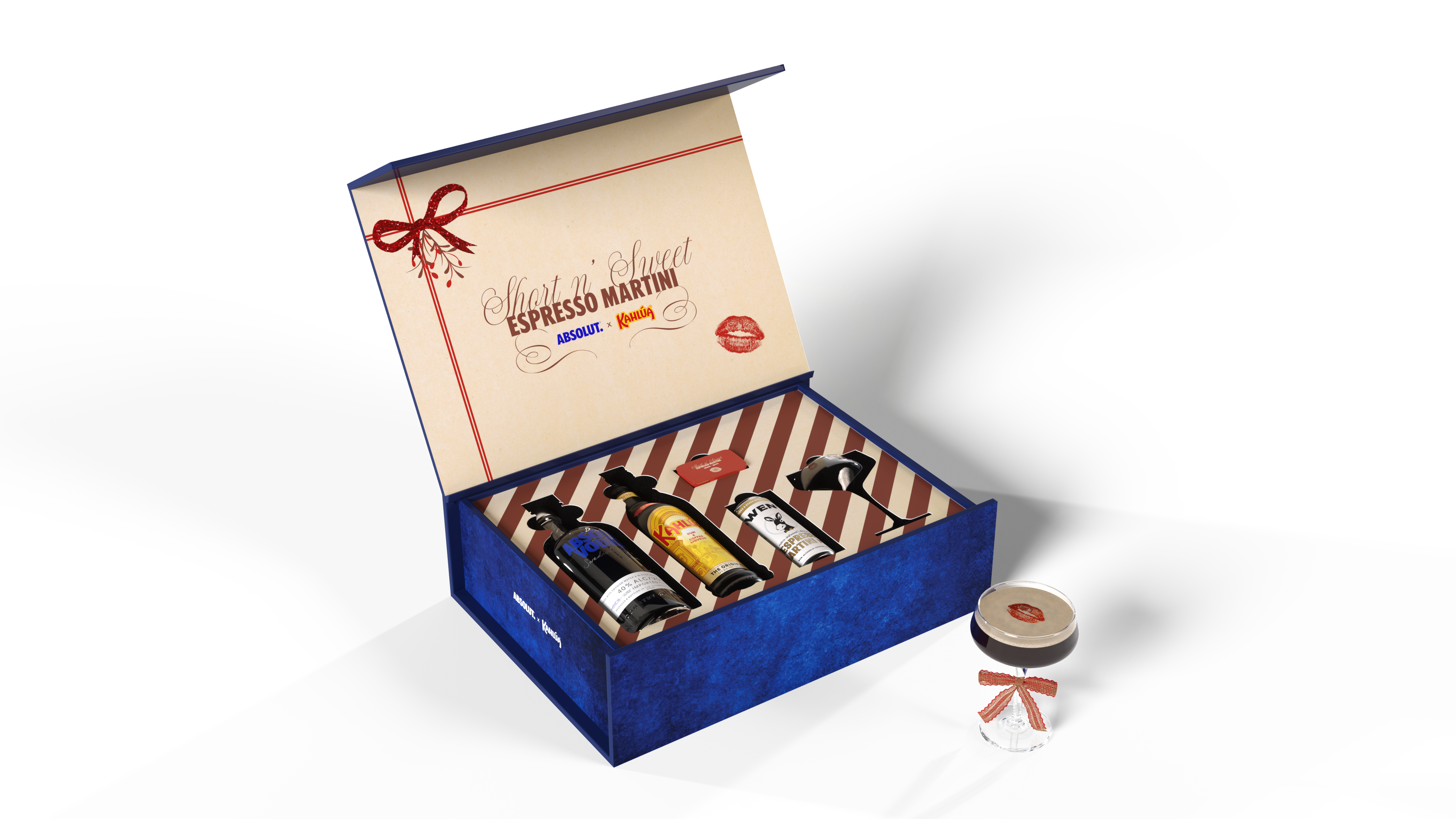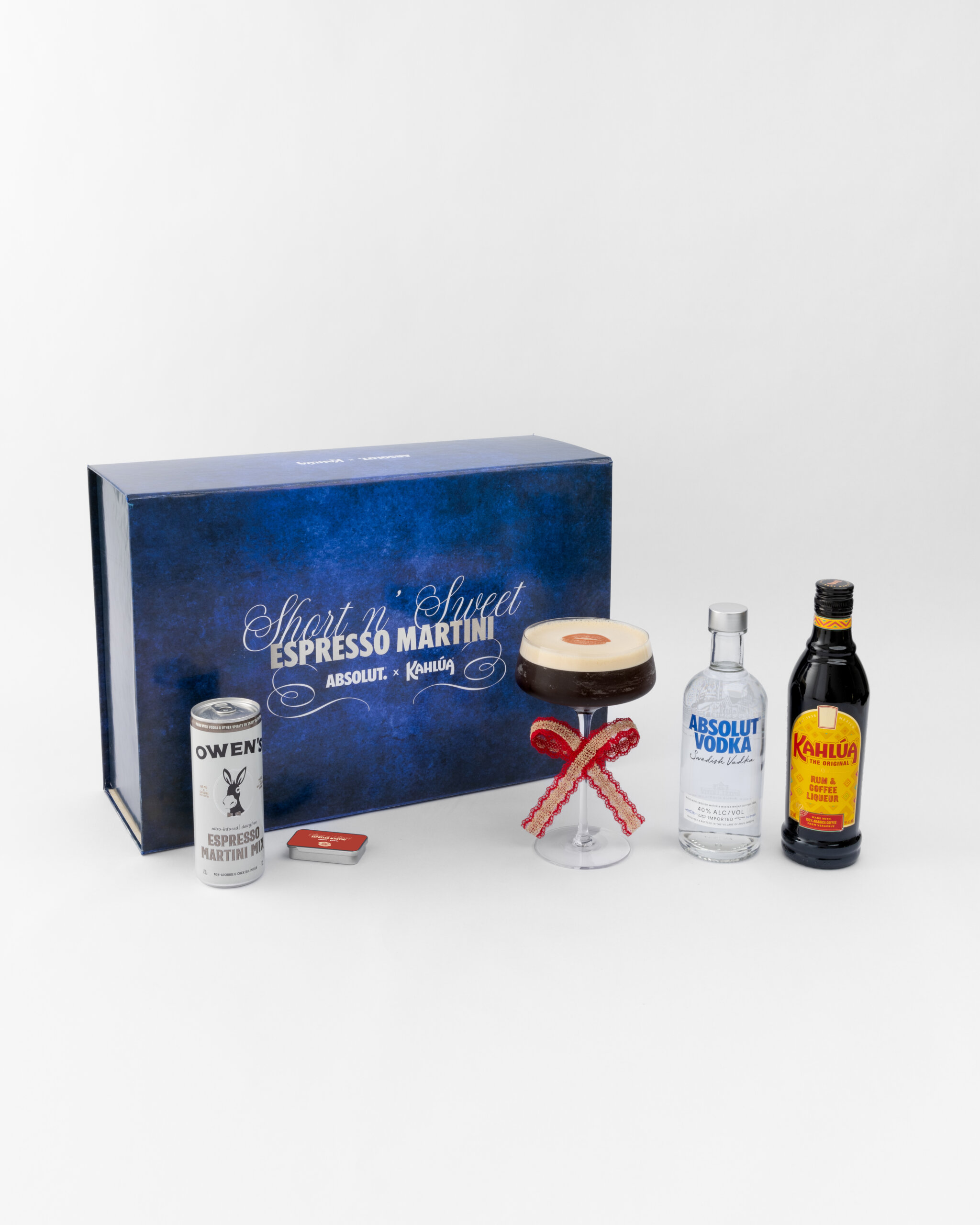 Enjoy an Absolut & Kahlúa Short n’ Sweet Espresso Martini like Sabrina Carpenter this holiday season with everything you need for that me espresso celebration. The kit comes with a bottle of Absolut (375ml), Kahlúa (375ml) and Owen’s Espresso Martini Mix (8oz can), along with Sabrina’s signature ribbon on coupe glass and kiss mark edible topper.