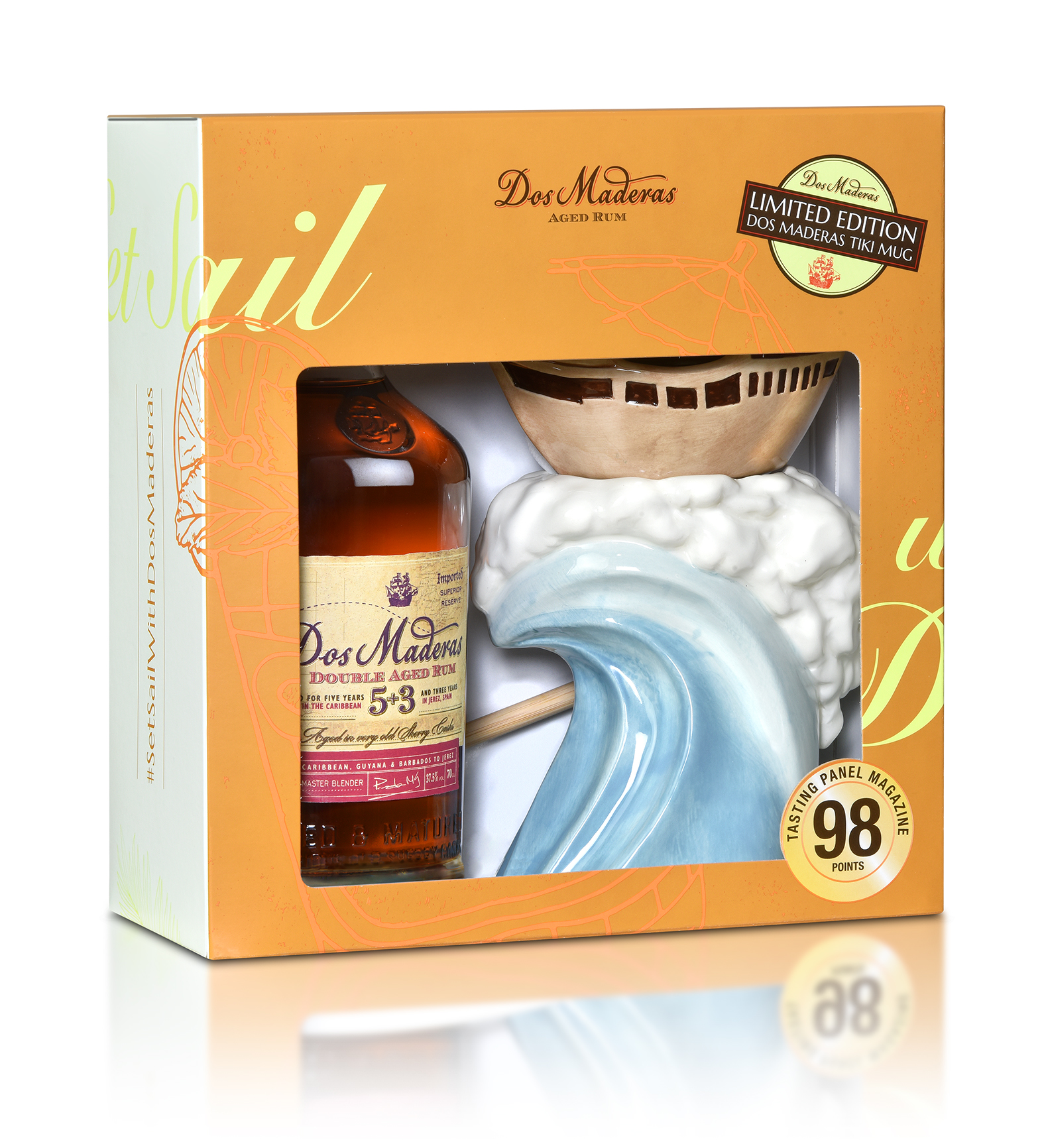 A one-of-a-kind Tiki mug that takes you on an exciting journey in search of the perfect Tiki cocktail made with Dos Maderas 5+3 Rum. This amber rum has elegant aromas of rich pecan, vanilla and a touch of smoky oak. Ripe fruit follows on the balanced palate, elevated by vibrant tropical spice and layered with a touch of smokiness, hints of sherry, and an intriguing note of tobacco on the finish.