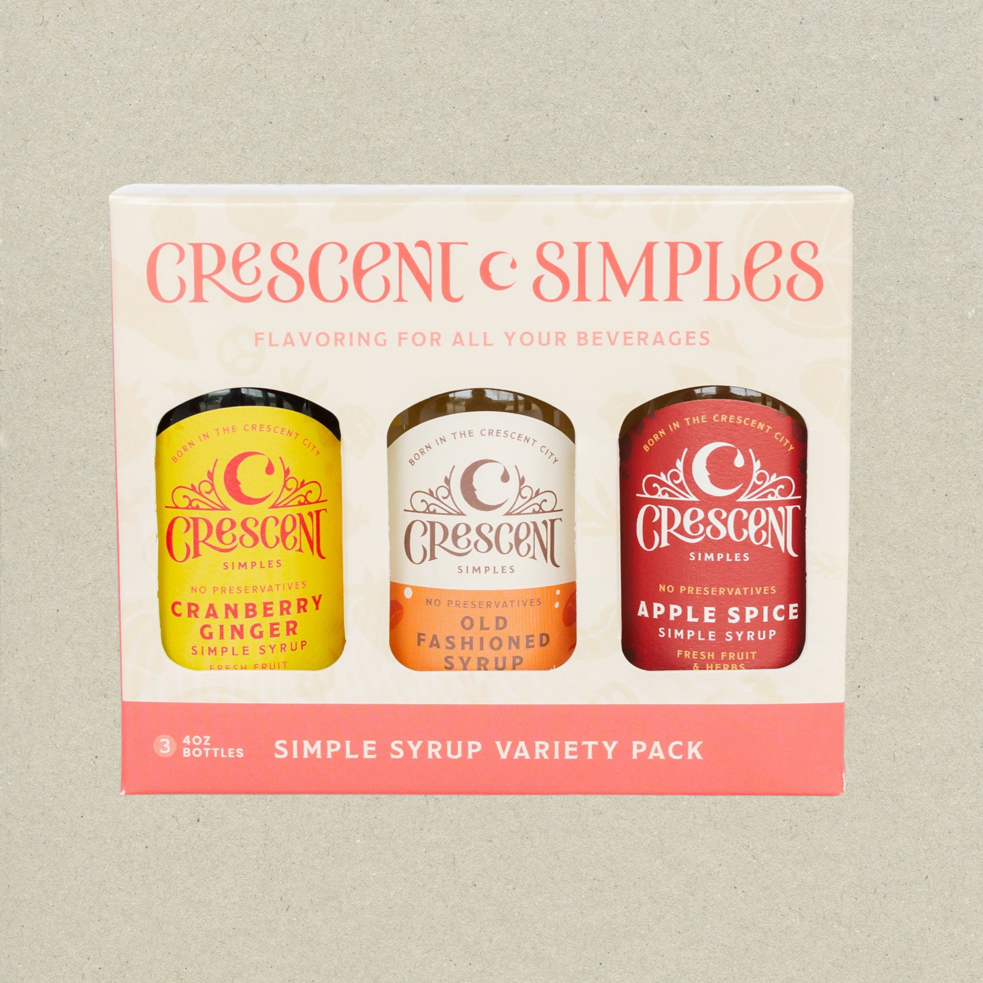A festive trio of craft syrups from Crescent Simples, perfect for effortless holiday cocktails—just add spirit and ice to create bar-quality drinks at home.