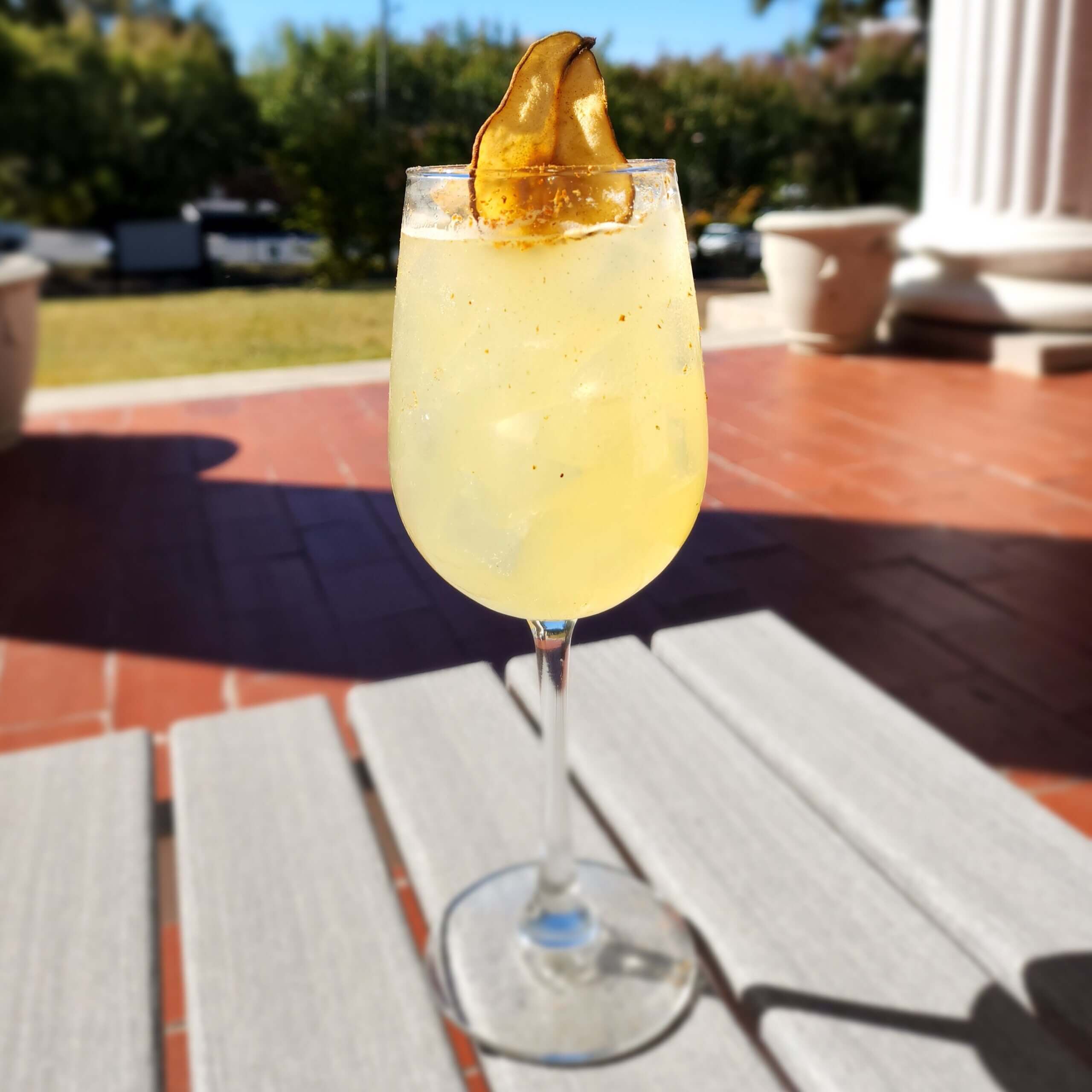 Preparation: Serve in Ice Filled Collins Glass Garnish Clove studded Pear Slices and Dehydrated Pineapple Slice Instructions Place Gin Lime Juice Spiced Pear Syrup and Ice into mixing tin. Cap tins and shake vigorously. Strain Cocktail into Collins Glass. Add Le Grand Coutage Blanc de Blanc and filled with Ice. Garnish with Pear Studded slices Pineapple Slice. Enjoy!