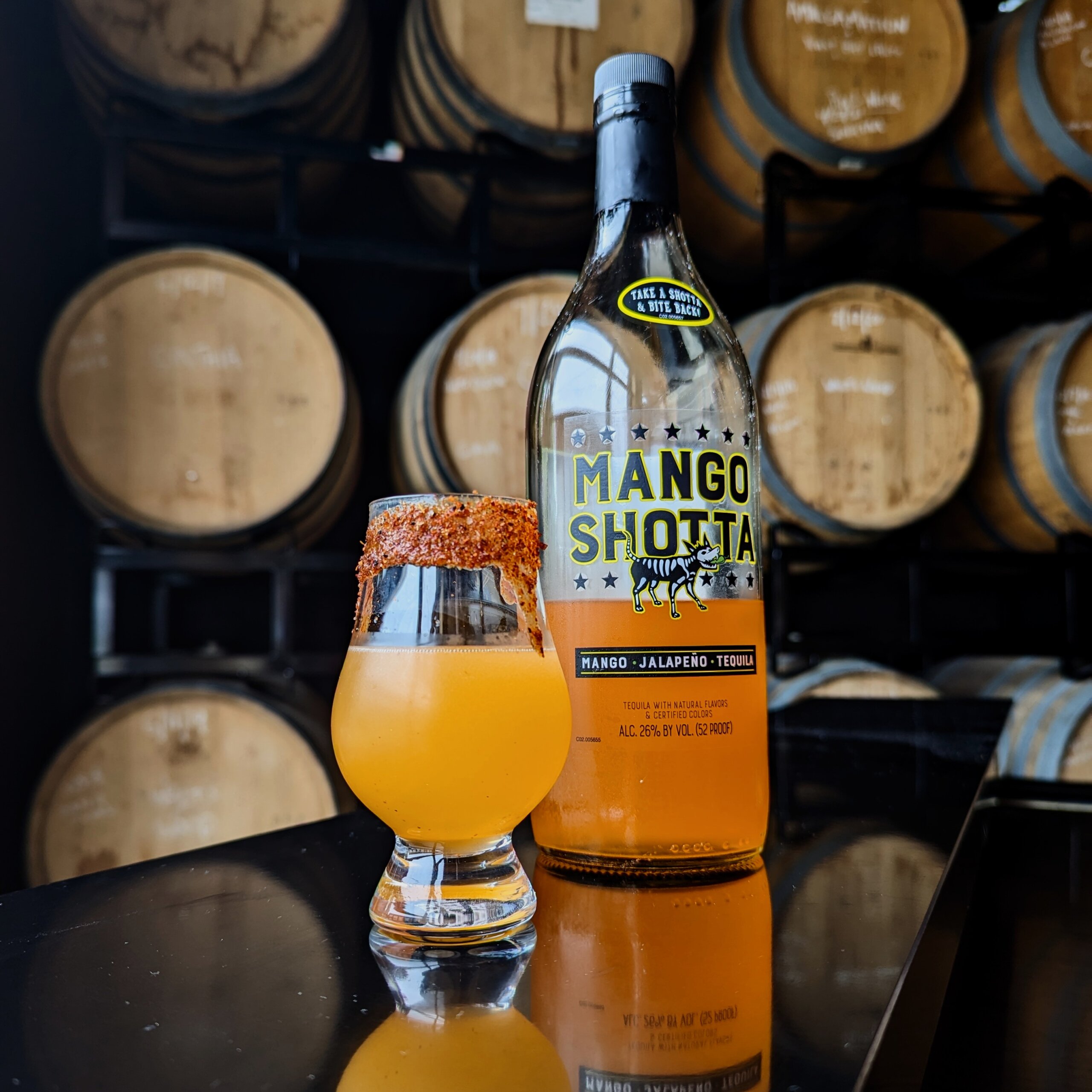Shake Mango Shotta, Chinola, Grapefruit and Chamoy with ice; serve over ice; top with Ginger Beer and garnish with Lime Wheel or Wedge