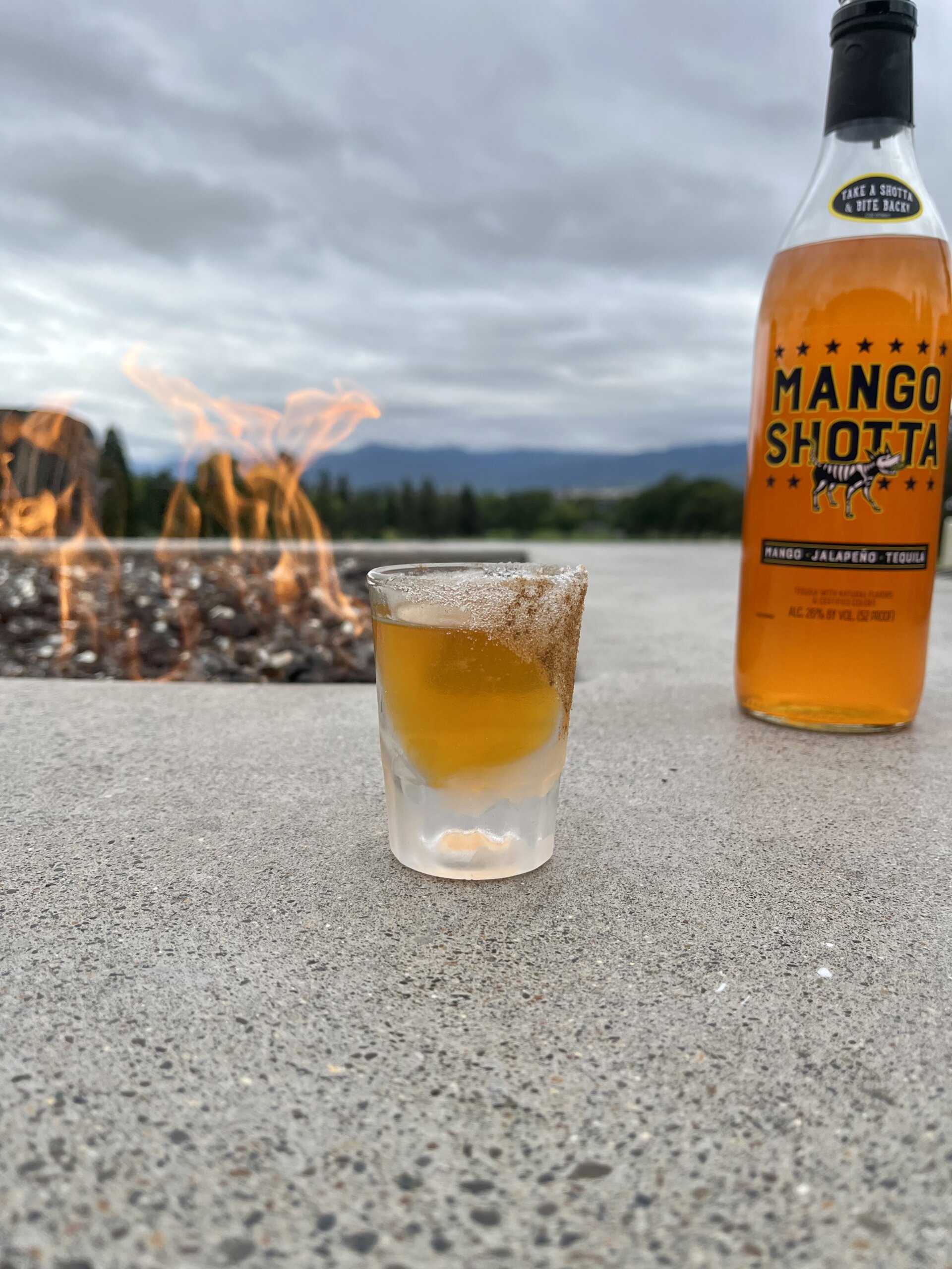 In a shaker tin filled with ice, add 0.75 oz of Mango Shotta, 0.75 oz of Grand Marnier, & 0.25 oz of White Creme de Cacao. Shake and strain into a cinnamon sugar rimmed shot glass.