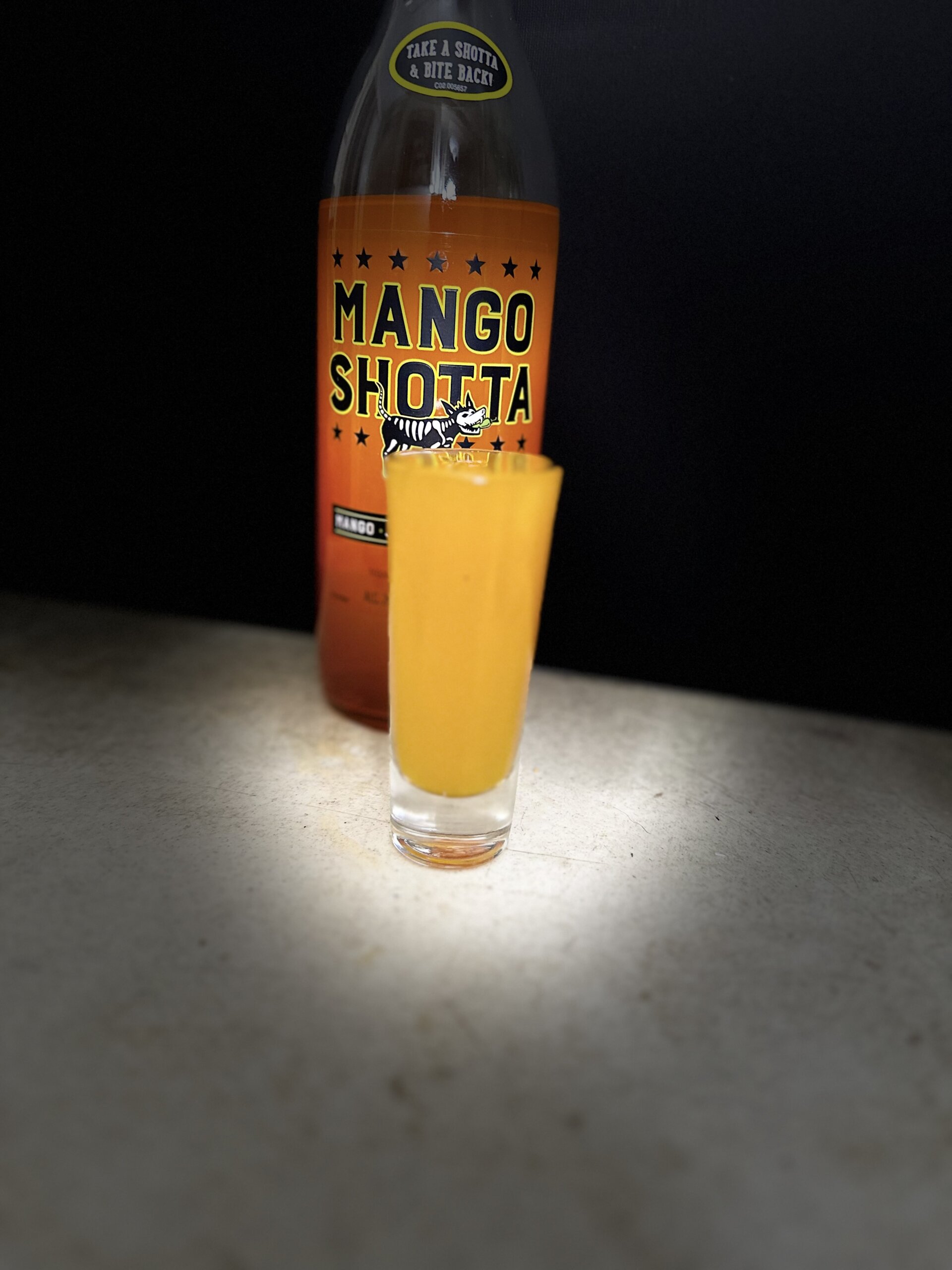 In Shaker add Mango Shotta, add the puree. Add Ice and shake. Stain onto shot glads