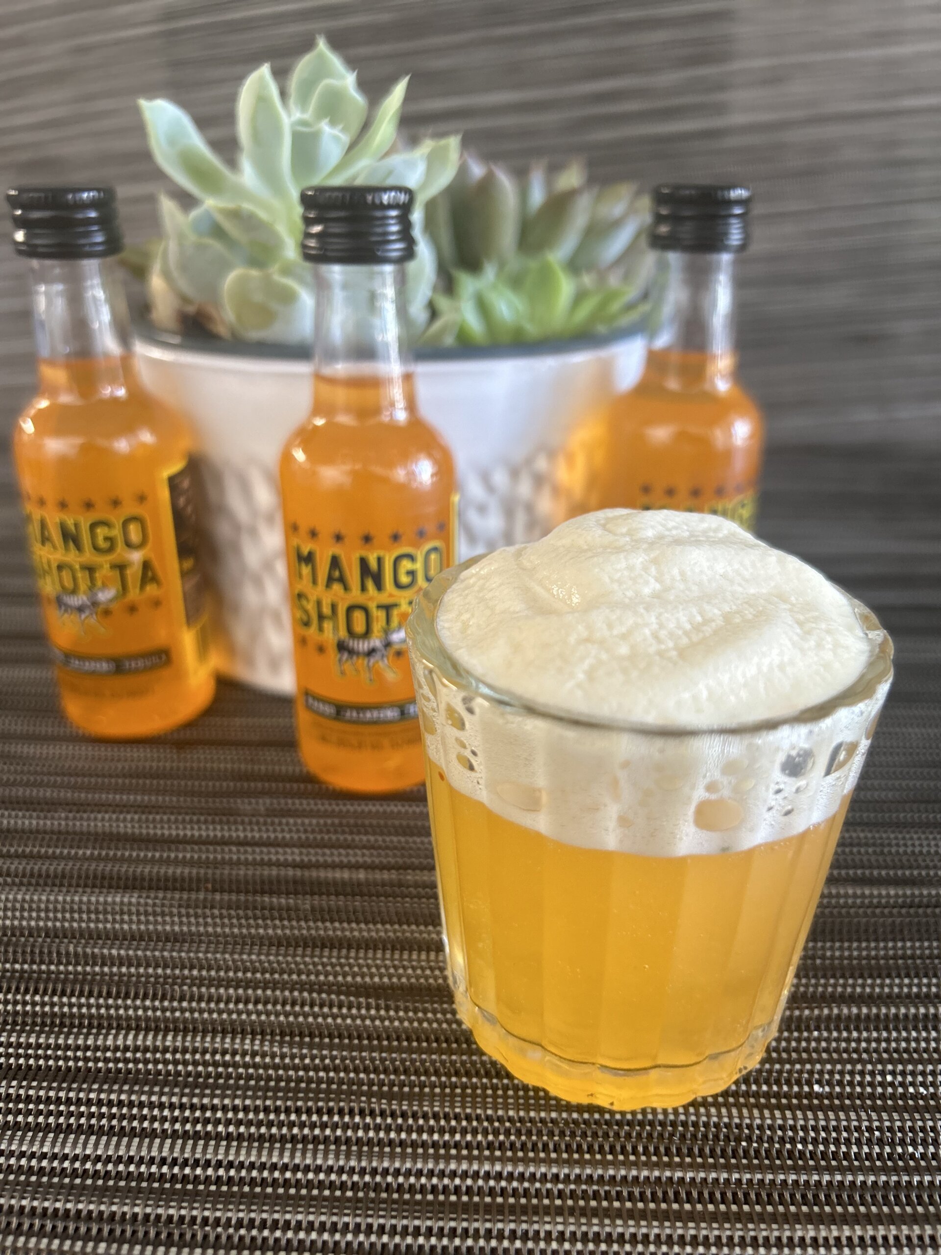 Shake the mango Shotta and pineapple juice in tin, then strain into shot glass. Top with the spicy tamarind mango foam and enjoy!