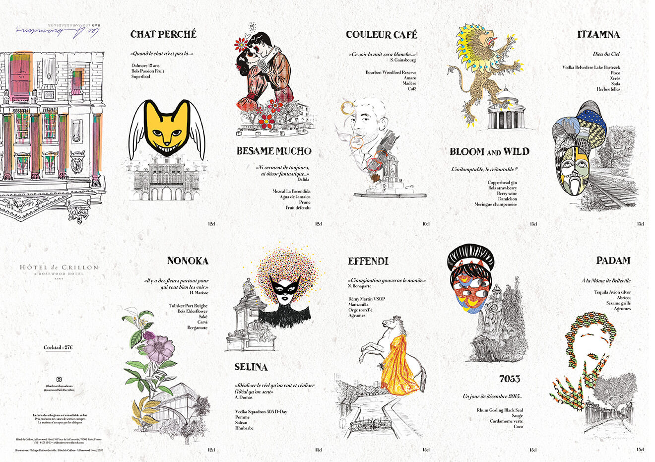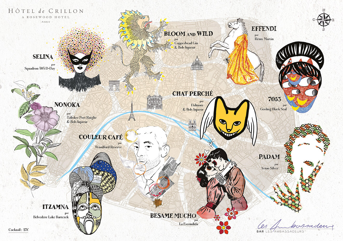 The new cocktail menu, launched at the hotel’s signature Bar Les Ambassadeurs, invites those to an art-focused stroll around the capitals lesser-known neighborhoods.