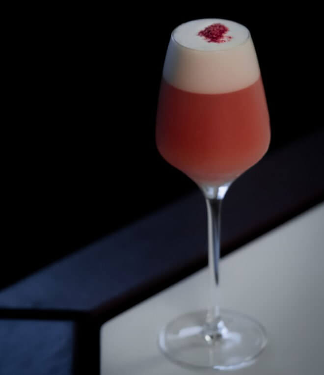 Egg, Lemon, Liqueur, Raspberry, Rum, Simple Syrup