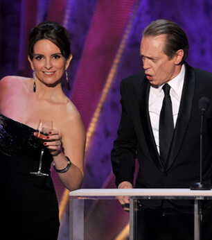 Tina Fey, who presented Buscemi with the award, threw back her glass of champagne at the mention "Scorsese" and audience members in the front row were seen lifting their glasses and taking a swig.
