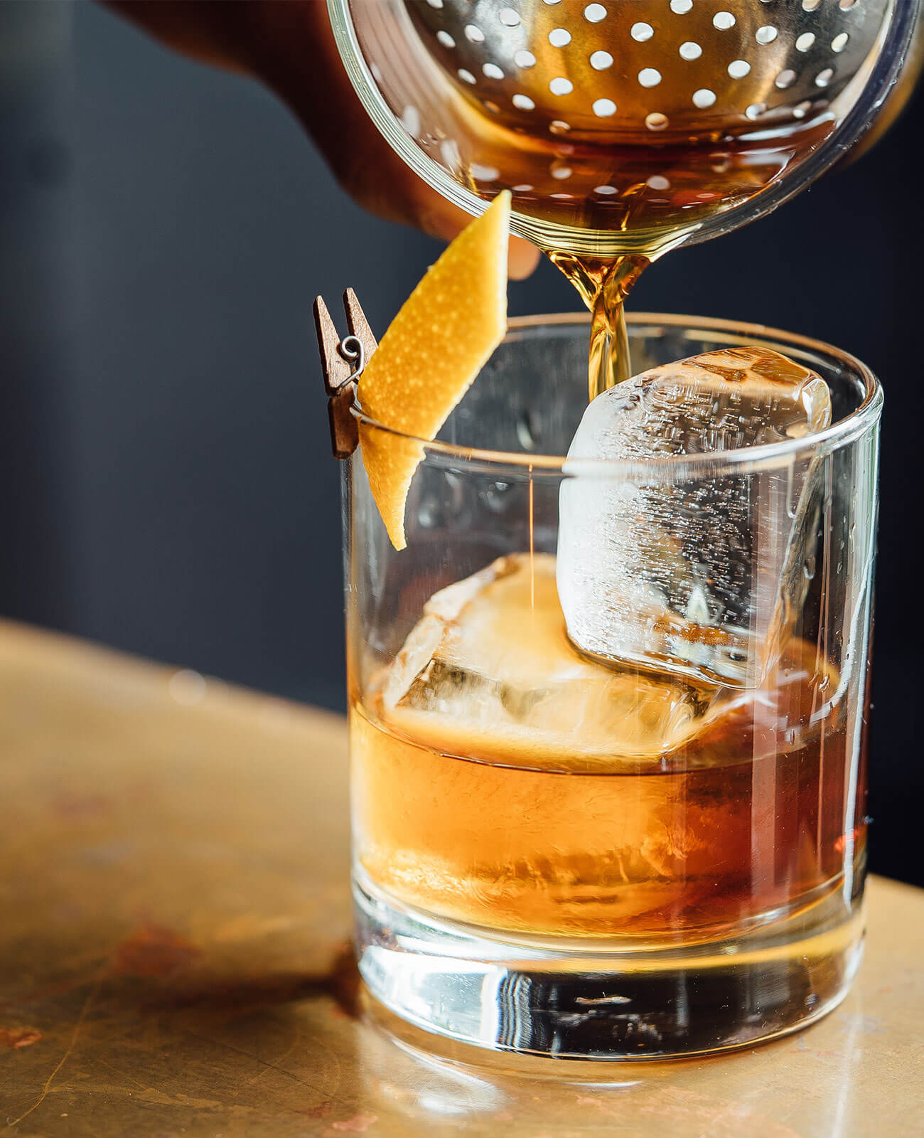 Preparation: Add all ingredients to a glass with ice and stir, express orange peel over top before garnishing.