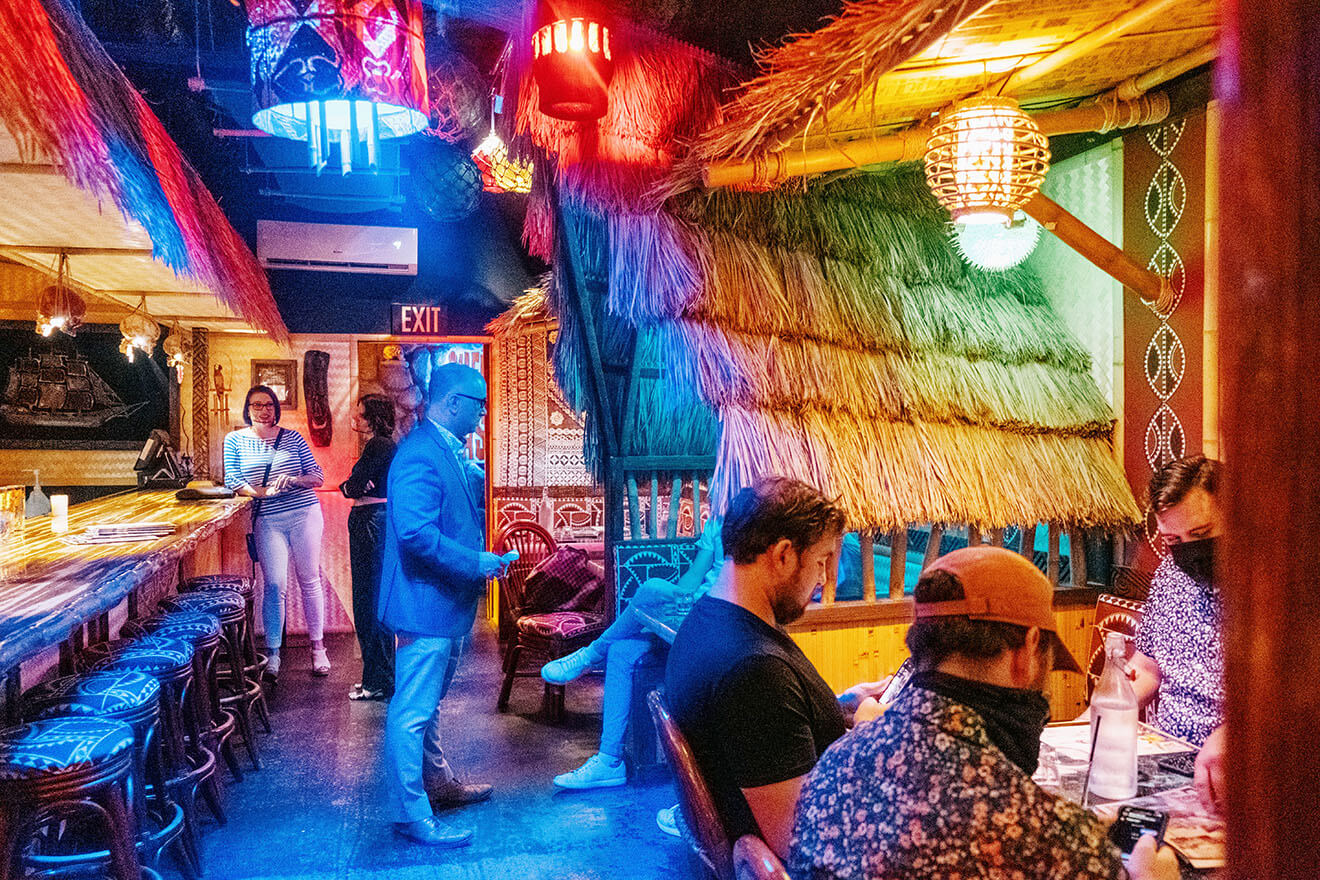 The Suffering Bastard is a hidden tiki bar, small and tucked away in the back of another bar. Giving off a speak easy vibe with no signs on the door. The owners Arthur and Julien hosted an incredible night.
