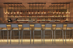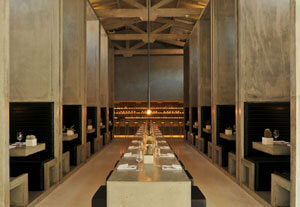The design of Workshop Kitchen + Bar, executed flawlessly by design firm SOMA Architects, has followed its own recipe which reflects that of the neighborhood where culture, trends, preferences and art come together. Located in the El Paseo Building (originally built in 1926), the space features 27’ high cathedral ceiling trusses and exudes an Industrial Chic feel featuring architectural concrete, black steel, monolithic forms and earthy modern tableware from Heath Ceramics. The design of the restaurant carefully balances vintage with modern from the eclectic antique stemware at the bar to the modern and sleek light fixtures designed by Beirut-based PS Lab (Workshop being their first U.S. project). Guests will have an array of dining experiences at Workshop from intimate dining for small parties in the dramatic concrete banquets to al fresco dining in the courtyard as well as a sleek bar and even a private dining room for up to 16 guests. The design of Workshop celebrates the style of its Palm Springs neighborhood and the history of the space, which at one time was the home of posh grocer Jurgensens from the 40’s to the early 80’s. Soon, the space will again focus on offering guests fresh foods in a sharply designed space.